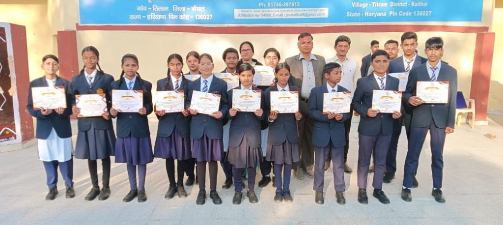 कैथल खबर, (18 फरवरी ) पी एम श्री जवाहर नवोदय विद्यालय तितरम 16 विद्यार्थियों ने अंतर्राष्ट्रीय हिंदी ओलंपियाड 2025 में भाग लेकर अपनी हिंदी भाषा की उत्कृष्टता का परिचय दिया। हिंदी विकास संस्थान द्वारा आयोजित इस प्रतिष्ठित प्रतियोगिता में विश्वभर के छात्रों ने उत्साहपूर्वक भाग लिया। जिसमें नवोदय विद्यालय से कुल 16 छात्र छात्राओं ने इस ओलंपियाड में हिस्सा लिया और हिंदी व्याकरण, साहित्य व रचनात्मक लेखन में अपनी प्रतिभा का प्रदर्शन किया। इनमें से छात्रा भूमिका कक्षा 10 व छात्रा खुशी कक्षा 8 ने प्रथम स्थान प्राप्त कर स्वर्ण पदक प्राप्त कर विद्यालय का नाम रोशन किया। अन्य छात्रों ने भी उत्कृष्ट प्रदर्शन कर प्रमाण पत्र प्राप्त किए। विद्यालय की प्राचार्या श्रीमती सुचिता गुप्ता ने सभी प्रतिभागियों को बधाई दी और हिंदी भाषा के वैश्विक महत्व को रेखांकित किया। उन्होंने कहा, “ऐसी प्रतियोगिताओं में भाग लेने से न केवल भाषा कौशल विकसित होता है, बल्कि छात्रों को अंतरराष्ट्रीय स्तर पर अपनी प्रतिभा दिखाने का अवसर भी मिलता है। उप प्राचार्य डाल चंद गुप्ता ने बताया कि इस ओलंपियाड में भाग लेना छात्रों के लिए एक प्रेरणादायक अनुभव रहा, जिससे वे हिंदी भाषा और साहित्य में और अधिक निपुण बनने के लिए प्रेरित हुए।